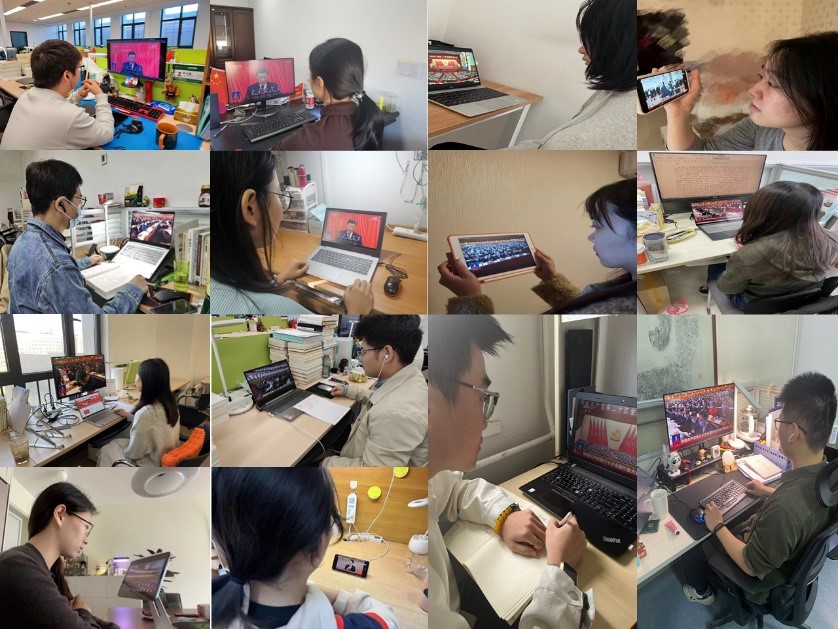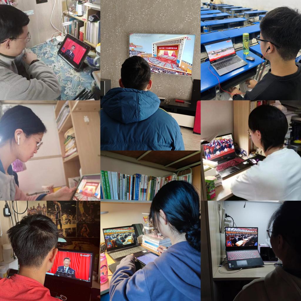 学子们备受鼓舞,精神振奋,进一步加深了对二十大的认识理解,明确了青年学子的历史使命和责任担当。硕1104和1105党支部闫君瑶同学提到,她将扎根基层,服务人民,在平凡岗位上为我党事业贡献力量。硕2113和2114党支部董玥影讲到,作为青年人,一定要扛起肩上的责任,不忘初心,牢记使命,把个人的发展融入时代和社会的需求中去,祖国需和人民需要我们去哪里,我们就在哪里挥洒青春,为早日实现中华民族伟大复兴贡献自己的力量。硕0114和0117党支部邹铭聪同学表示,作为青年学生,能够处于中华民族伟大复兴的关键节点,是感到无比自豪的,要坚定不移听党话、跟党走,知行合一、廉洁自律、好学不倦、勤政务实,青春不留遗憾,奋斗从未止步。