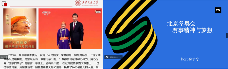 来自内蒙的安媛媛同学讲述了家乡红色英雄人物都贵玛的故事。在新中国遭遇严重自然灾害的时候,党中央做出决定,将三千名孤儿送到内蒙古。作为一名普通的牧民,19岁的都贵玛主动承担起了抚养28名孤儿的责任。正是无数位如都贵玛一样的“草原母亲”用超越血缘的大爱和温暖,挽救了三千名孤儿的人生,创造了生命奇迹。