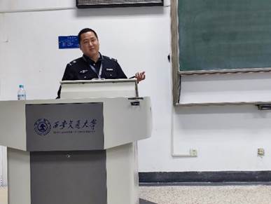 随后,常帅从常见的校园安全隐患、突发火灾事件应对措施和消防器材正确使用方法三方面为大家讲解了消防必备技能,指出了拨打119消防电话的注意事项和灭火器的正确使用方法。交通安全方面,他提醒同学们要乘坐正规平台网约车、随时注意行车路线、不随意拼车,切实提高个人安全防范意识。