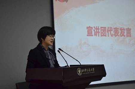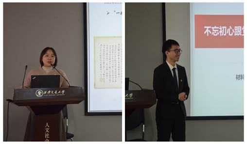 在宣讲交流环节中,“人文之光”宣讲团教师成员熊雯副教授做“唐代茶器向世界讲述中国故事”主题宣讲,通过对中国茶文化的生动讲解展现了开放、自信、包容的中国文化。材料学院西迁精神宣讲团陈圣捷同学以“不忘初心跟党走,向西而歌续华章”为主题,动情讲述西迁故事,为在场师生再现了那段激情燃烧的奋斗岁月。