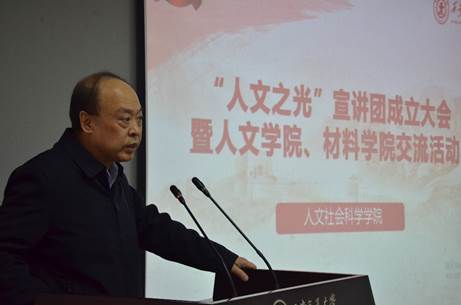 单智伟在致辞中表示,“人文之光”宣讲团在学科匹配度和交叉度上极具优势,要珍惜把握机会,以服务国家和社会需求为出发点,充分发挥人文学科专业特长,讲深悟透党的二十大精神,同时开展专项研究,为国家社会积极建言献策,“干实事、出人才”,单智伟表达了对宣讲团的期待和希望。