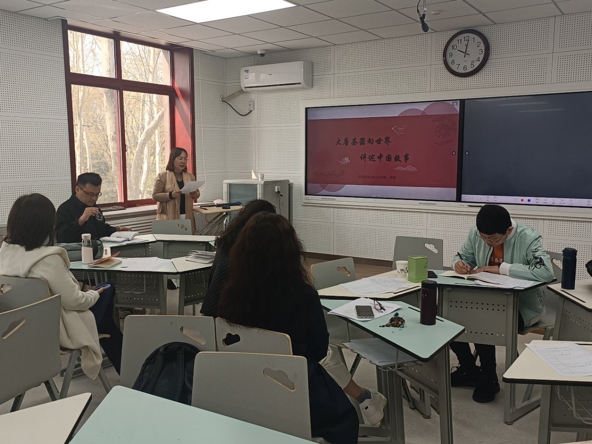 会议邀请到“人文之光”宣讲团成员、艺术系熊雯副教授为大家做题为“大唐茶器向世界讲述中国故事”的宣讲。宣讲立足文化自信,传播了中国历史悠久的“茶文化”精神。熊雯老师以茶圣陆羽所做《茶经》为切入点,论证中国饮茶文化兴于唐代,用高清图片展示了唐法门寺地宫中出土的精美茶器,通过古画了解唐宋时期的贵族、文人品茶的状态。最后熊雯老师将中国茶文化的精髓总结为“茶道”。