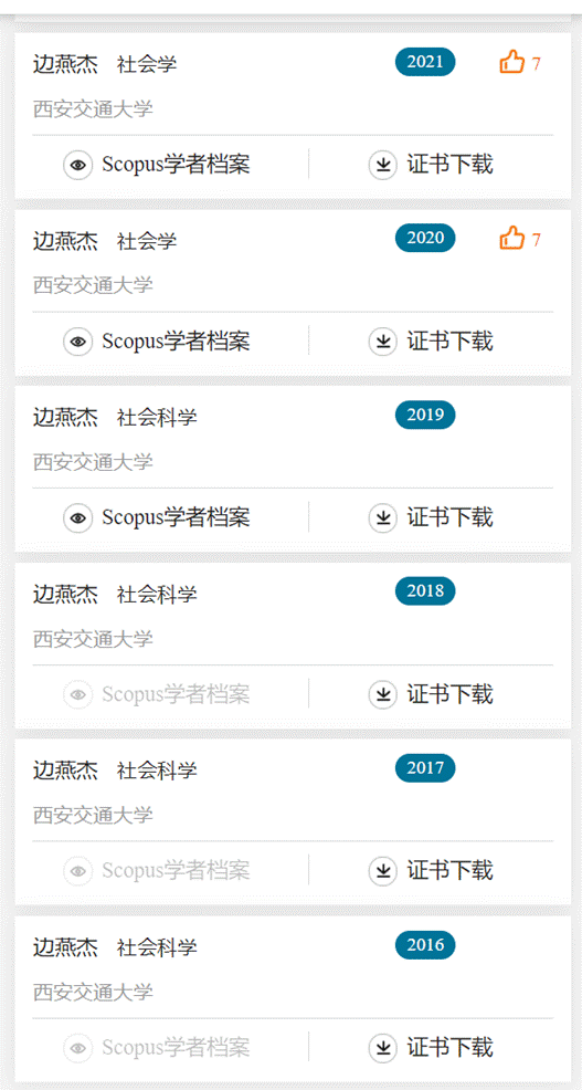 社会学学科带头人边燕杰教授再次入选。这是边燕杰教授连续第9年登上中国高被引学者榜单,也即从该榜单2015年首发以来,边燕杰教授每一年都入选其中,同时边燕杰教授也是黑料网