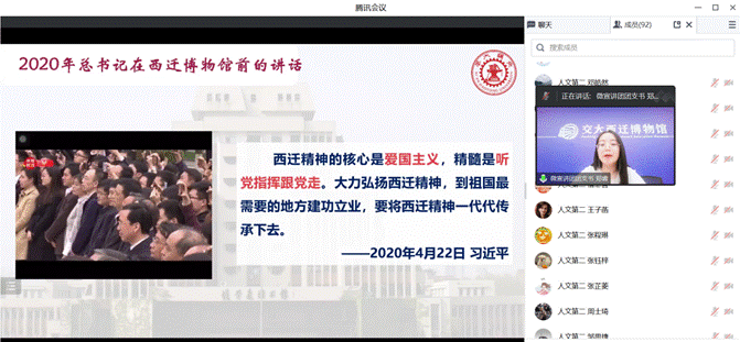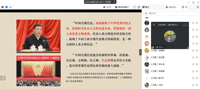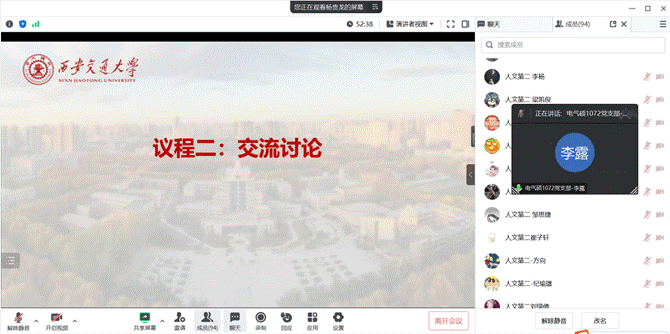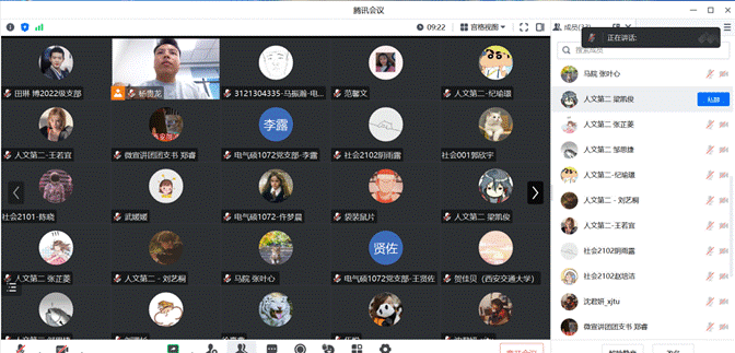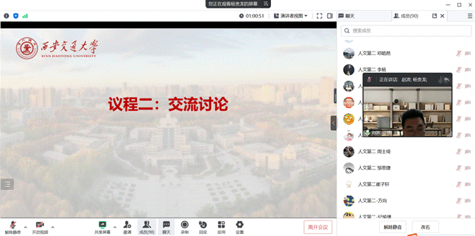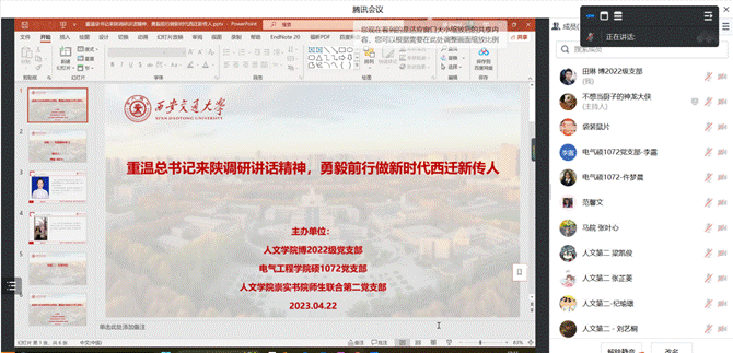 崇实书院师生联合第二党支部共同开展“重温习近平总书记来陕调研讲话精神,勇毅前行做新时代西迁新传人”主题党日活动。博2022级党支部书记杨贵龙主持会议,三个支部近100余人通过线上形式参加会议。