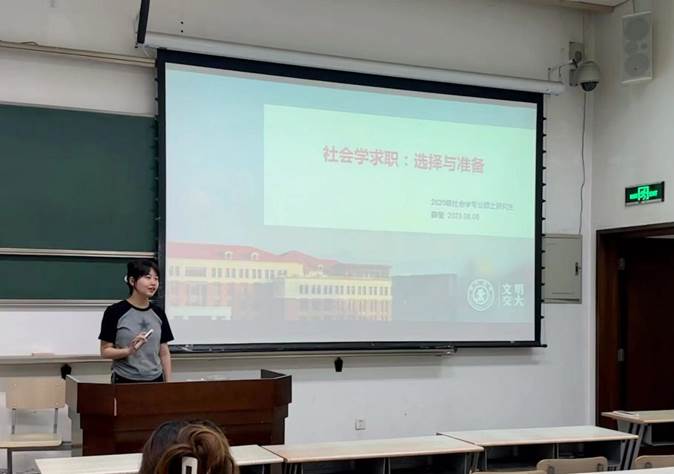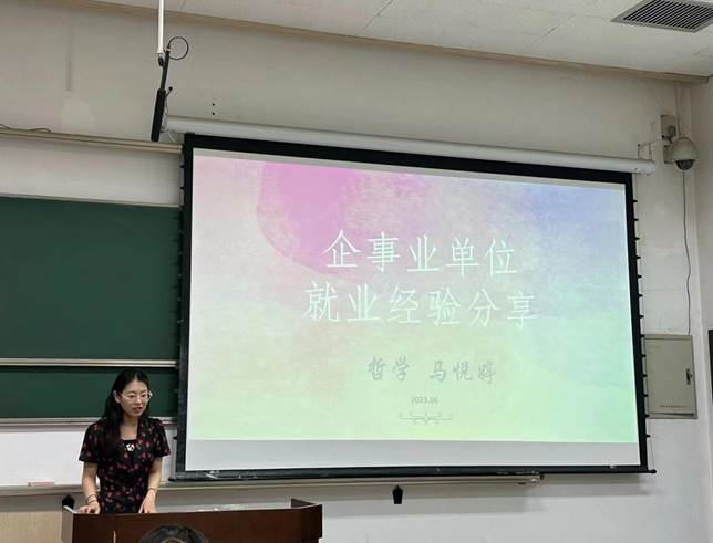 于6月5日晚举办了2023年企事业单位就业分享交流会。本次分享交流会特别邀请了4位已拿到企事业单位offer的同学与大家分享自己的就业经验,并解答了同学们在面试、实习、就业等方面的问题,80余名同学参与本次分享会。