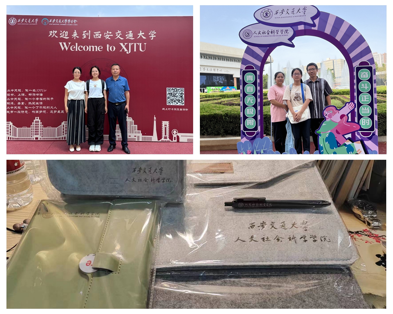 在迎新期间还为每一位新生准备了贴心的“新生大礼包”,向新生传递浓浓的关怀和温暖,专属logo的文件包、电脑内胆包、数据线包、笔记本、签字笔……每一个精心准备的物品,是关怀亦是期待,为新生开启新的征程助力。人文类2302班李欣夏的家长感慨道:“很荣幸孩子能加入西安交大这个大家庭,踏入校园,绿树成荫,蝉声鸣鸣,百年老校的氛围扑面而来,一路上不仅有学院领导和老师们的亲切问候,更有热情洋溢的志愿者帮忙拿行李,有幸还遇到了和蔼可亲的王树国校长。一想到孩子能在这温暖上进的大家庭里度过大学生活,我们家长就很放心,希望孩子在优秀的学校和老师的带领下继承西迁精神,成长为一个有家国情怀,追求卓越,积极上进的人!”