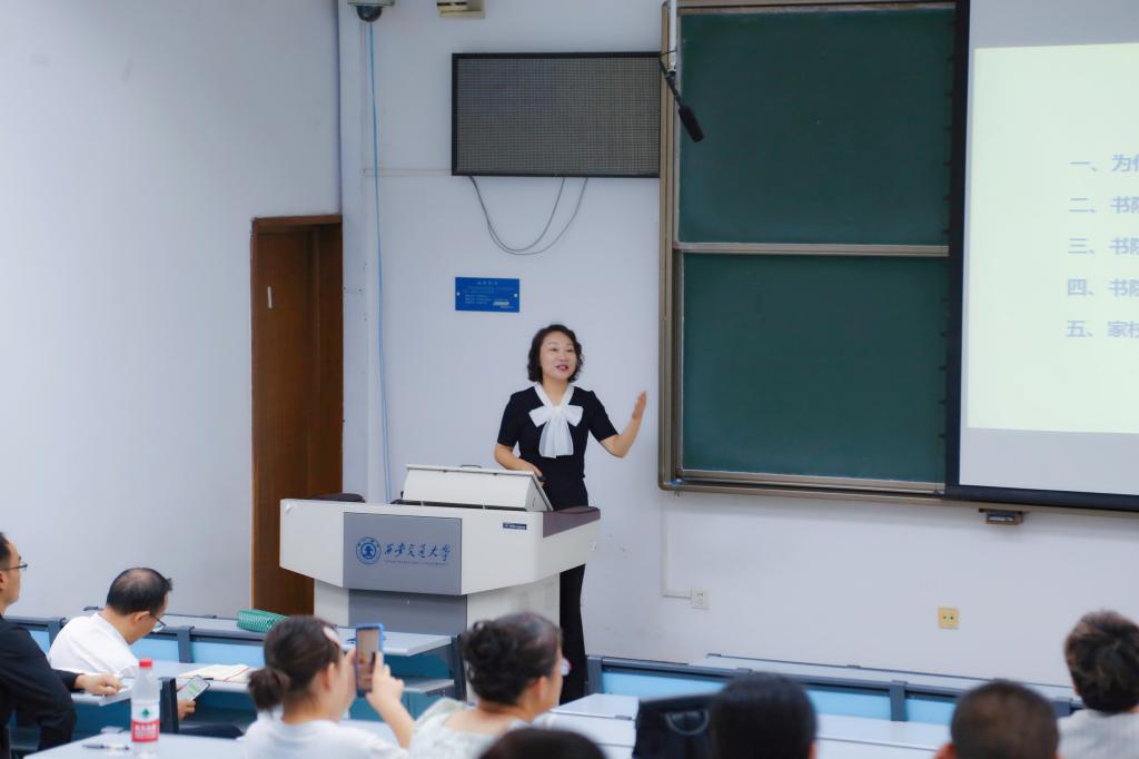 张顺副院长做《交叉融合创新,培育一流人才》专题报告,为家长们详细介绍了学院关于人才培养、教师队伍、教学管理、国际交流等方面的情况,他呼吁新生家长们积极配合学校工作,帮助孩子加强自我管理,树立目标和理想,制定合理规划,携手共育英才。