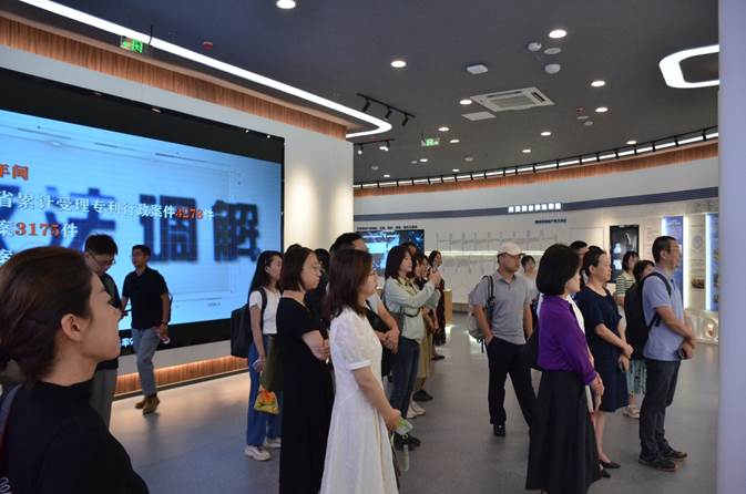 在陕西省知识产权保护中心副主任郭莉的陪同下,大家首先参观了陕西省知识产权保护中心展厅,详细了解了知识产权制度的形成与发展历史、新中国成立以来我国知识产权事业的发展与建设成就、陕西省知识产权大事记等。