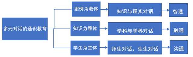在第二步线下课堂讲授环节中,为了解决以往通识教育缺三通的问题,教学团队以案例为载体,实现知识与现实的对话,解决缺智通问题;以知识为整体,针对同一社会问题和案例,不同学科的教师同台授课,以实现学科与学科的对话,解决缺融通问题;以学生为主体,激发师生对话和生生对话,解决缺沟通问题。
