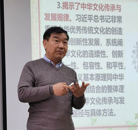 参会教师纷纷表示袁祖社教授的系统辅导解答了学习习近平文化思想时遇到的很多困惑,并就如何基于不同的学科研究习近平文化思想、如何理解文化和意识形态的关系、如何将马克思主义基本原理和中国优秀传统文化这两个属于不同理论研究范式的内容有机结合、如何用习近平文化思想指导学科发展等问题展开讨论。
