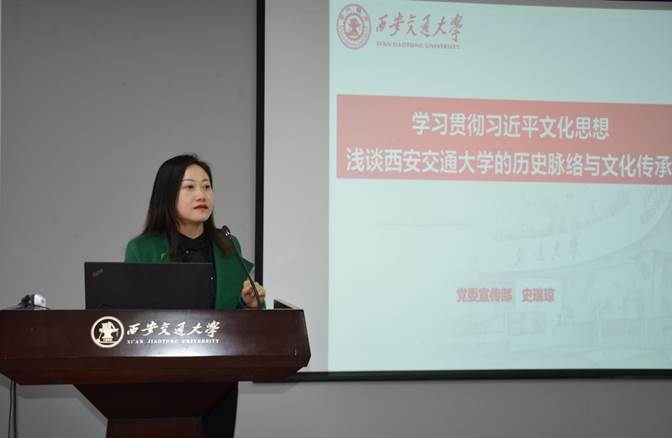 的历史脉络与文化传承”为题,回顾发掘128年校史文脉,深度阐发交大独树一帜的办学传统、办学特色、办学定位和文化传承。“只有回看走过的路、比较别人的路、远眺前行的路,弄清楚我们从哪儿来、往哪儿去,很多问题才能看得深、把得准。”史瑞琼副部长以习近平总书记关于“以史为鉴,开创未来”的系列讲话为出发点,阐述了文脉传承的重要性,并从增强历史自觉 ,坚定文化自信、国家战略与交通大学西迁、黑料网