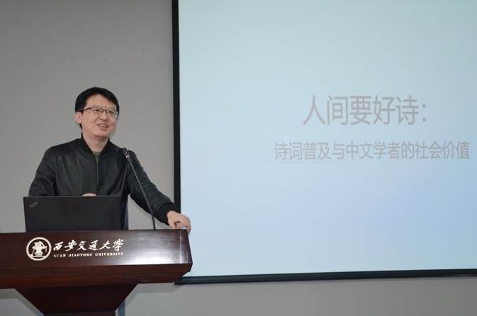 中文系副教授李明以“人间要好诗—诗词普及与中文学者的社会价值”为题进行报告。他立足自身专业知识、治学经历和工作实践,介绍了如何在互联网时代背景下弘扬诗教传统,传承中华文脉,展现了中文系师生积极与社会各界开展合作,为普及诗词的新时代文化建设做出的贡献。李明副教授详细介绍了诗学熏陶对修养身心、提高个人精神境界的独特功效,他从社会主义精神文明建设和风清气正网络空间建设的实际需求出发,强调新时代人文学者应重新发掘自身社会价值,协调整合专业研究与大众普及,经世致用、勇于任事、致力创新,发扬中华民族悠久历史中的文化基因、精神价值和人文情怀,坚定文化自信,以推动中华优秀传统文化创造性转化、创新性发展为己任。