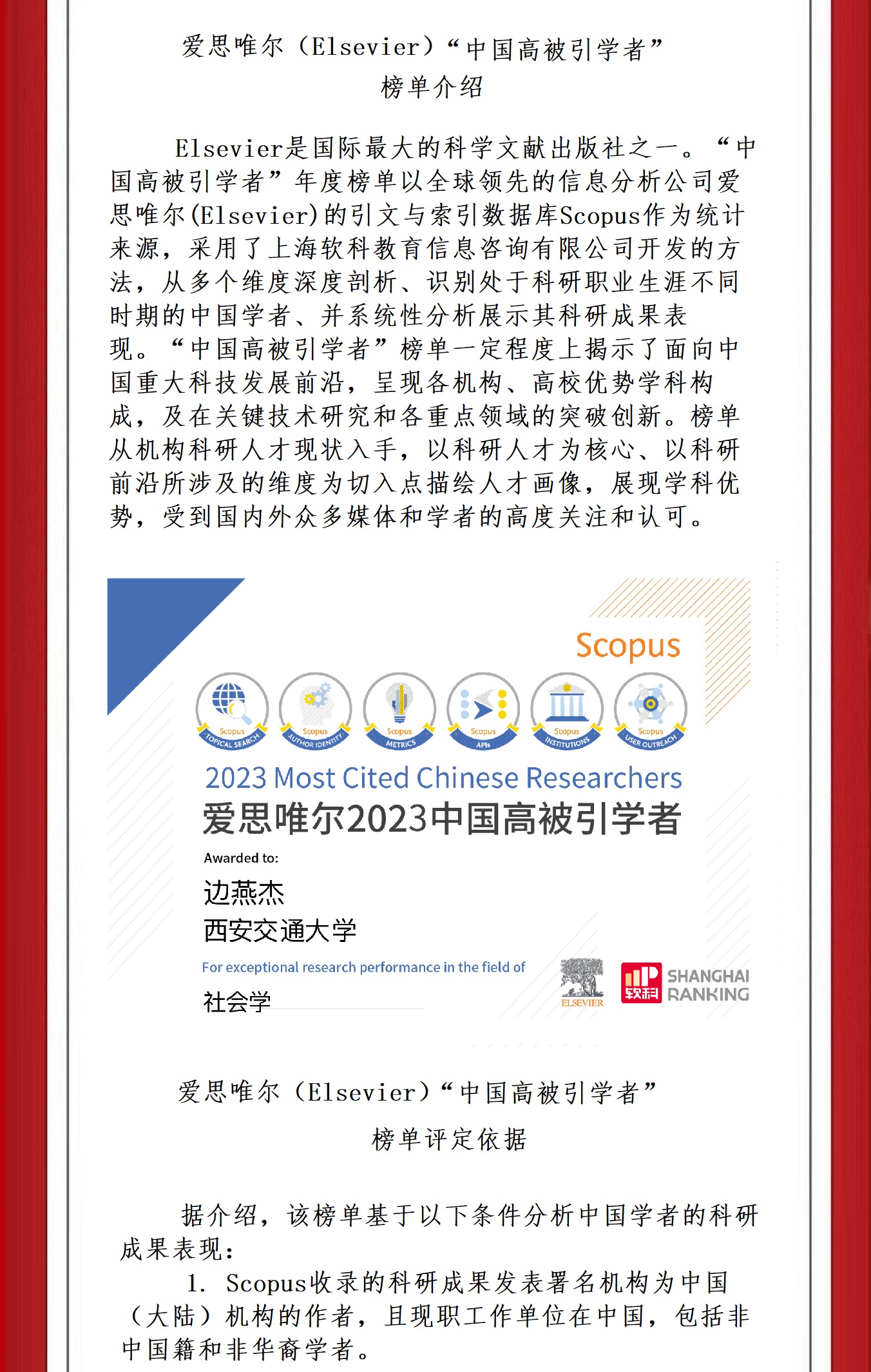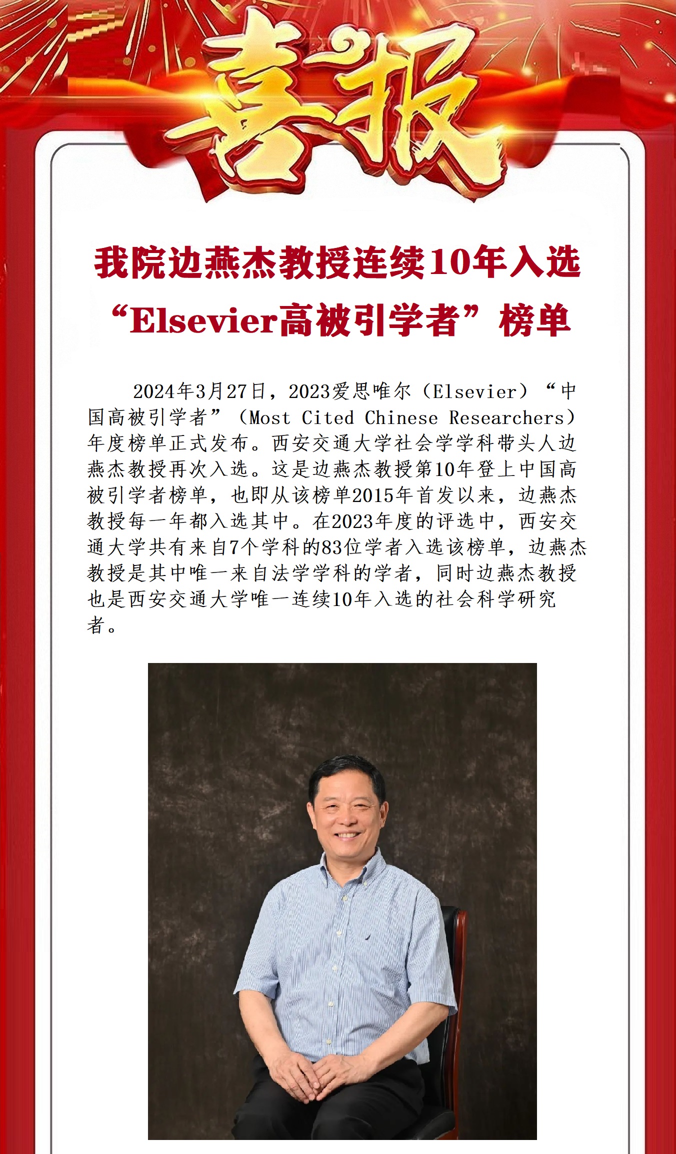 喜报 | 我院边燕杰教授连续10年入选“Elsevier高被引学者”榜单!