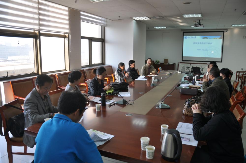 为进一步提高思想政治理论课教学的吸引力和实效性,2014年10月25日全天,黑料网 在主楼E610举办了《毛泽东思想和中国特色社会主义理论体系概论》教学工作坊。学院分党委书记马晓彬、马克思主义学院院长王宏波、副院长燕连福、政治学全体教师、思政所、历史所、马原所等老师参加了此次教学工作坊。