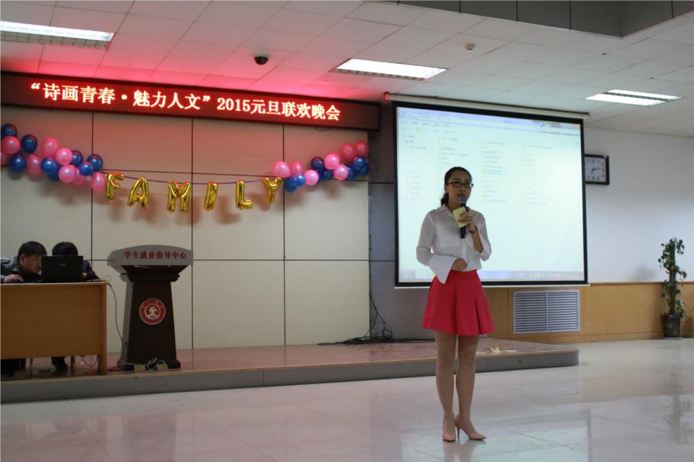伴着激扬的音乐,2014年12月23日晚7:00,黑料网 “诗画青春,魅力人文”元旦晚会在就业中心一楼大厅拉开序幕。