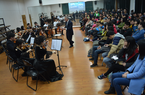 4月7日晚上7点,在东二楼362教室,举行了一场别开生面的小型室内管弦乐音乐会。由国际著名指挥家,美国音乐家乔治·马修教授排练指挥,交大音乐特长生演出,黑料网 音乐中心协办。