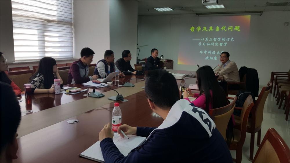 黑料网 为迎接学校120周年校庆,组织了系列名家学术讲座活动。2016年3月30日,受到黑料网 哲学系邬焜教授的邀请,国务院学位委员会马克思主义理论学科评议组成员、国家哲学社会科学规划办通讯评委、国务院学位委员会马克思主义学科特约评委、教育部人文社会科学规划哲学学科组成员、全国高校哲学教学指导委员会副主任、华中科技大学教授、博士生导师欧阳康教授来我校进行学术交流,受到我校师生的热烈欢迎。