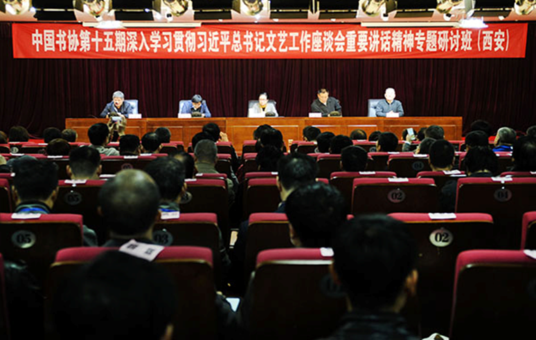 近日,中国书法家协会第十五期“深入学习贯彻习近平总书记文艺工作座谈会重要讲话精神专题研讨班”在西安举办,280余名在陕中书协会员参加了研讨培训活动,我院中国书法系党支部全体党员教工参与其中。