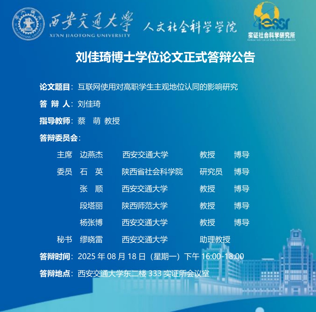刘佳琦博士学位论文正式答辩公告