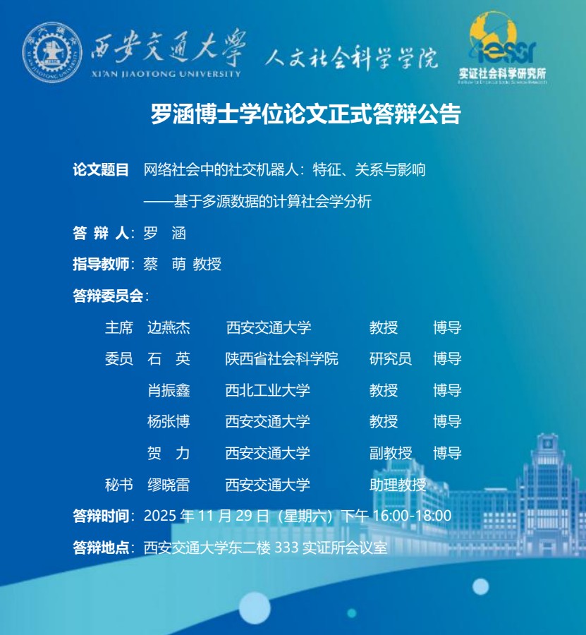 罗涵博士学位论文正式答辩公告