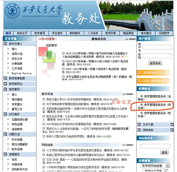 1、登陆学校教务处网站//dean.heiliaogw.net/Index.aspx?page=1&mod=0&article=0,点击右侧的“教学管理信息系统(师生端)”,如下图:
