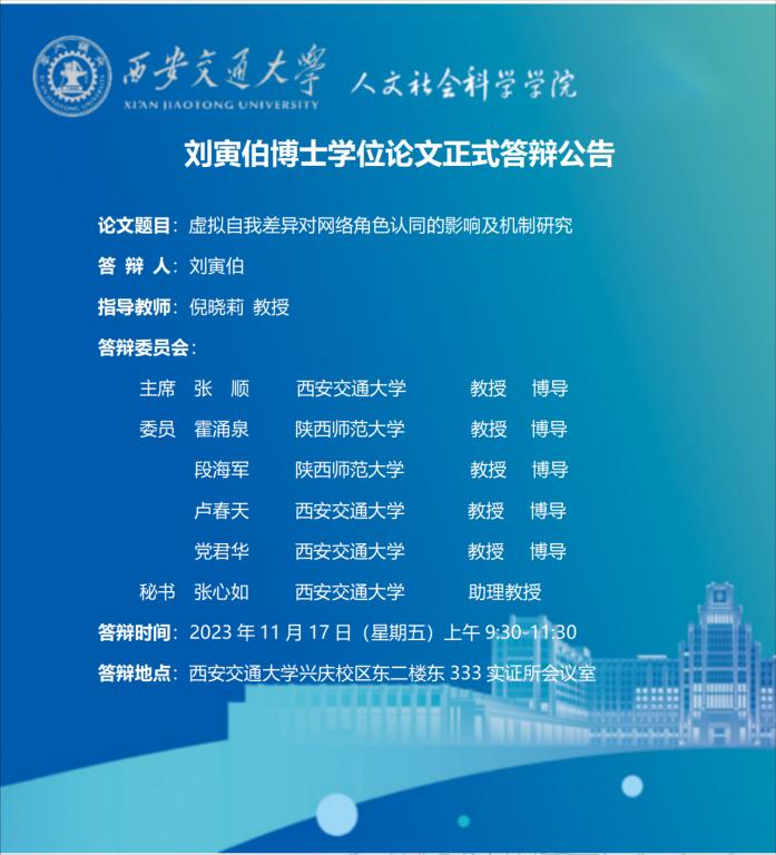 刘寅伯博士学位论文正式答辩公告