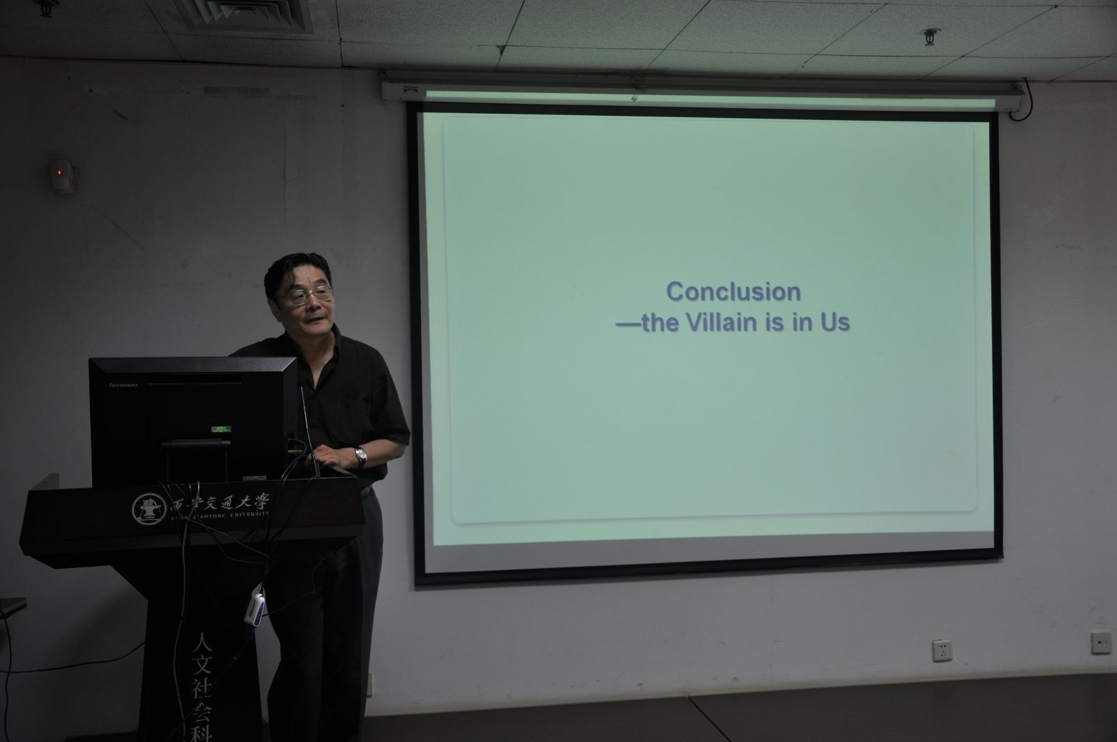 叶坦教授是旅居美国的著名华人学者,以比较戏剧作为其主要研究对象,出版了《Common Dramatic Codes(戏剧的共同密码)》等众多学术著作。本次在我院举办的“东西方影剧中的反面角色”讲座,叶坦教授从文化差异、历史习惯等诸多方面解读了东西方影剧尤其是反面角色的特点及形成原因,以一种全新的视角和学术思维为全院的师生勾勒了东西方影剧中的人物谱系。在叶坦教授看来,中国的影剧习惯于通过多视角叙事来表现人物的生活,而西方作品则倾向于在叙事中体现人物性格的不同面,两种不同的叙事思维造就了我们今天在荧幕上看到各种形形色色又极具文化基因的反派角色。