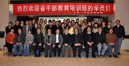 为了贯彻落实中央关于建设学习型政党的指示精神,省委组织部依托我校对选派的干部进行培训。由我院承办的2011年第一期“中国传统文化与现代化”班已经圆满结束,“社会动态与舆情分析”班于本月12日开班。2个班的学员分别来自省委办公厅、省政府办公厅、教育厅、财政厅、商务厅、省国土资源厅、省广播电影电视局、省地税局。学员中包括厅局级领导、地级市的人大、政府和政协的主要领导,我校组织部选定的10位校管干部也参加了2期的培训,参加学习的领导学员共计80多人。培训班得到了省委组织部、校领导、干部培训基地和学院的高度重视和大力支持。省委组织部副部长詹德旺亲自到培训班跟班听课,进行督学活动,王小力常务副书记参加开班典礼并致欢迎词,原党委书记王文生、基地主任罗能勤、校组织部副部长杨小渭分别参加了两期的开班典礼。李建群副院长在开班典礼上介绍了黑料网