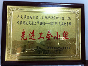又讯,近日,马原所工会小组由于务实肯干、成绩突出喜获学校工会颁发的2011——2012年度工会系统先进工会小组奖状,为我院工会工作争得了荣誉,作出了表率。