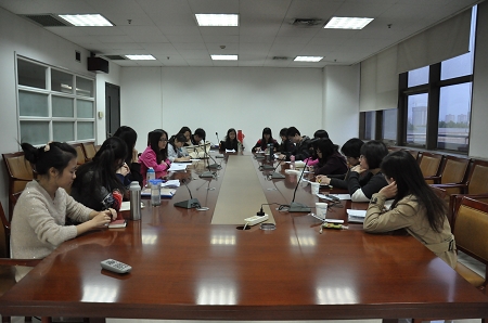 支部书记侯帆同志主持了此次会议,她就国家主席夫人彭丽媛的随行出访这一媒介热点引出关于“第一夫人与国家形象”主题的探讨。随后,支部成员踊跃发言,根据新闻传播的专业特点纷纷表达了自己的看法。翟彦妮同学首先发言,她认为彭丽媛此次的高调亮相,充分展现了国家的软实力,并大大提升了中国的国家形象。汤兴慧同学从国家实力增强和彭丽媛个人魅力两方面总结了“中国第一夫人”成为舆论热点的原因。冯志伟和王晓彤等同学更是从未来的发展方向考虑,希望国母彭丽媛能够充分挖掘自身优势,并与中国传统文化有效结合,继续为提升国家形象发挥作用。同时,同学们也提到“弱国无外交”,认为中国必须依靠强大的综合国力,才能在外交上有话语权。观摩会从问题的表象论述,到原因的具体分析,再到未来的发展希冀层层深入。最后,许春秀老师对此次观摩会进行了点评,她肯定了此次组织生活会,对大家的积极讨论、踊跃发言提出表扬。许老师还针对“第一夫人与国家形象”这个主题,提出了自己的见解,获得同学们热烈的掌声。