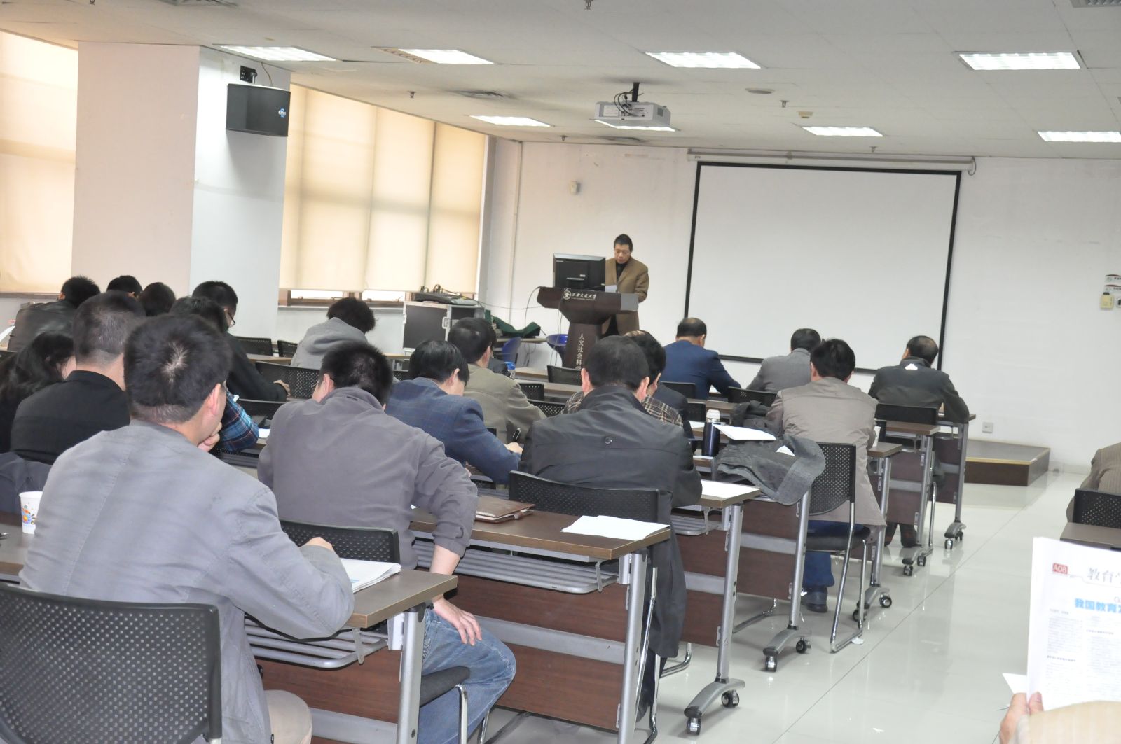 最后,全体与会人员对学院领导班子及成员教育实践活动开展情况进行民主评议,并填写评议表,由学校督导组进行回收。