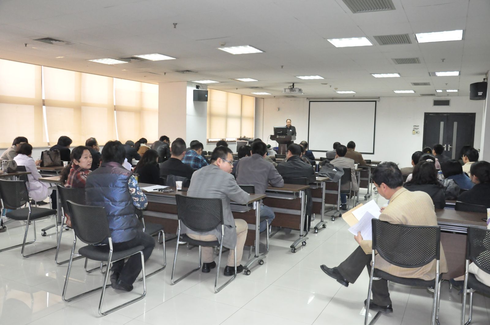 分党委书记马晓彬从主要做法、取得成效、工作体会和今后努力方向几个方面对学院深入开展群众路线教育实践活动情况作了总结。马晓彬书记指出,以为民务实清廉为主题的党的群众路线教育实践活动,是党的十八大做出的一项重大部署。9个多月来,学院领导班子高度重视、精心组织、求真务实、扎实工作,始终把搞好教育实践活动作为学院的首要政治任务和促进学院科学发展、转变工作作风的重要契机,全面贯彻落实中央八项规定,聚焦作风建设,集中解决“四风”方面存在的突出问题。按照既定的工作步骤与要求,顺利有序地开展了教育实践活动。高质量推进了学习教育、调查研究、查摆问题、民主生活会、整改落实、建章立制等各个环节的工作,使党员、干部得到了党性锻炼,改进了作风。