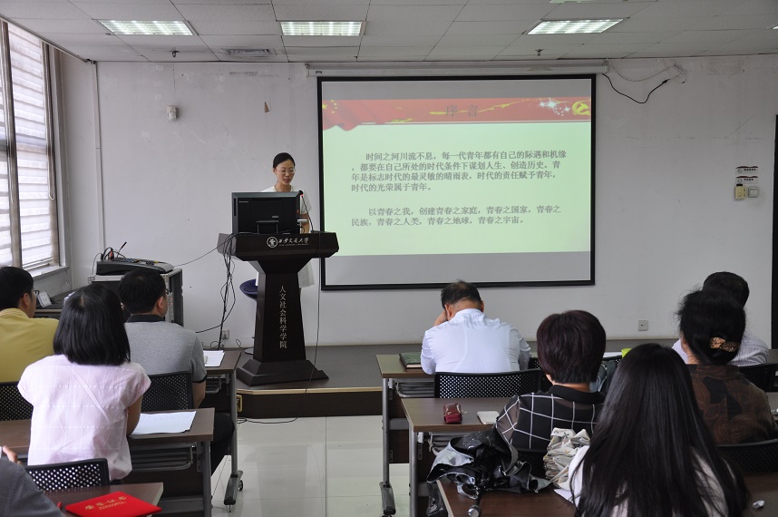 会上,先进党支部和优秀共产党员代表分别做交流发言。社会学系党支部书记童梅同志以“包容多元、传递温暖、共同发展”为主题,展示了支部近两年来的工作做法、工作特色、突出成绩以及未来努力方向;硕士5099党支部书记闫潇同学从组织建设、思想作风建设、支部氛围建设、发挥党员先进性作用等方面,汇报了学生党建工作的风采;优秀共产党员代表张宏邦同志从坚定理想信念、提高政治觉悟,立足本职工作、增强大局意识,坚持以知促行、争做优秀党员三个方面谈了他本人和传播学系全体党员的学习工作状态;迟凯文同学以“实现中国梦,青春勇担当”为主题,阐释了“以青春之我,创建青春之家庭,青春之国家,青春之民族,青春之人类,青春之地球,青春之宇宙”的内涵。