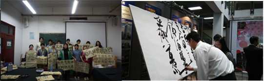 书法讲座、现场展示也是书法交流传播的重要方式。2016年3月,书法党支部教师为日本东京理科大学的师生举办了有关书法传统文化的讲座,并带领大家进行现场体验。