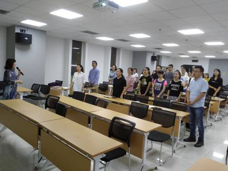 最后,李娟老师在简单的讲授了声乐发音的基本方法后,与所有参与讲座的老师和同学们一起演唱了这首气势磅礴的《保卫黄河》,大家仿佛回到了那个年代,感受着音乐带来的革命激情。