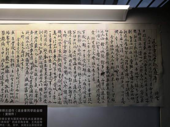大家参观了白公馆的地牢、刑讯室和各个展室,对于当时国民党反动派的丑恶有了更为直观的感受,也对这些革命先烈宁死不屈的精神感到由衷敬仰。在陈列室里,我们看到了“小罗卜头”的父亲宋绮云烈士手写的遗书。这封遗书用精美的毛笔字书写,文辞典雅,字里行间充溢着崇高的革命志向和情怀。共产党员为国为民不惜牺牲的精神彰显了其坚定的理想信念和共产党人的价值追求。