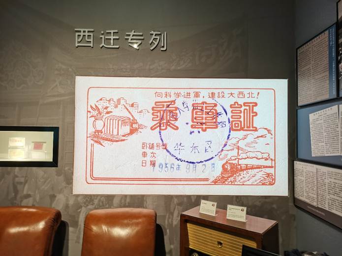 西迁部分呈现了1956年至2017年间波澜壮阔的交大西迁故事以及西迁后学校的发展情况。支援内地发展的实物和图文资料,担负使命的火车票、发旧泛黄的试卷、充满历史痕迹的证书都充分展现了交大前辈们胸怀大局、无私奉献的精神,都让同学们重温了那段可歌可泣的为中国经济发展、教育发展做出贡献的西迁历史。