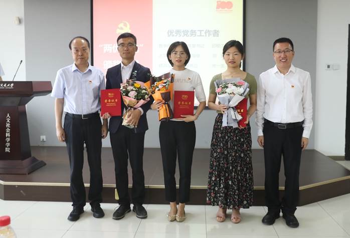 党委书记许佳辉、院长李黎明为到场的7位党员同志颁发“光荣在党50年”纪念章。大会共表彰先进党支部3个、优秀共产党员38名、优秀党务工作者3名,学院领导及教师支部书记为全体受表彰集体和个人颁发奖牌和证书。