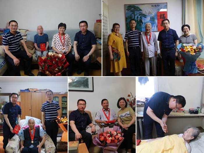 党委书记许佳辉、副书记王劲为不便参加集体颁发仪式的党员送去纪念章,对老党员表示慰问和感谢。