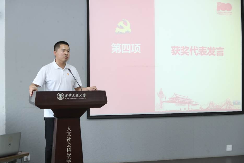 优秀党员学生代表、社会学系研究生倪蒙用自己在学校党组织教育引导下不断成长的经历,号召学院全体学生党员,要牢记习近平总书记对青年人的殷殷嘱托,坚定理想信念,精进学业本领,勇担青年使命,不负时代,不负韶华,为实现中华民族伟大复兴贡献青年力量。