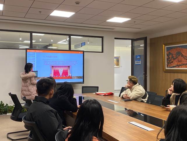 李翘楚带领大家进行了党的十九届五中全会讲话精神的学习。她从1个重要判断、决胜全面建成小康社会取得10方面决定性成就、到二零三五年要实现的9方面远景目标、“十四五”时期经济社会发展的6方面主要目标等方面向大家介绍了党的十九届五中全会讲话精神,强调全体党员要继续团结一心,顽强奋斗。
